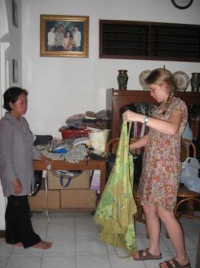 | Josie specifying the particulars with Pupun, the dressmaker |