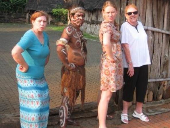 | It's all in the look -- Susan, the esteemed representative from Irian Jaya, Josie, and Mommo |
