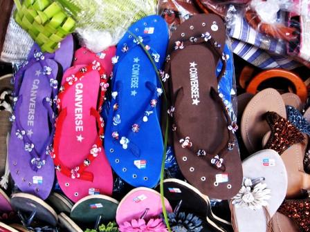| Many authentic goods are available for purchase in Bali, if you know where to look. When it comes to flip-flops, you might even have a choice. |