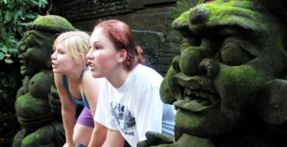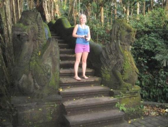 | Here's Barbie in the sacred monkey forest in Ubud. Surprisingly, there are no monkeys in sight. That's mostly because we'd given away all our fruit by then. |