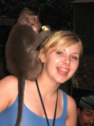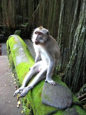 | As seems to be our tradition (three years running), we dashed off to Bali for a few days before returning to the U.S. for the summer. While there, this kindly monkey cosmetologist gave Barbie a banana creme rinse and scalp massage -- all for the cost of a snack. |
