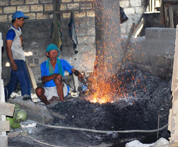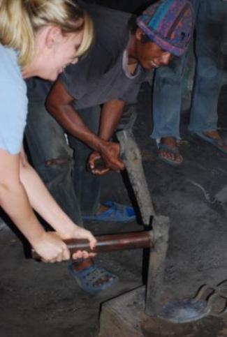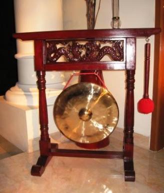 | We went to nearby Bogor and Bandung for a long weekend. We stopped at the gong "factory," where Barbie lent a hand in the manufacture of the gong we bought. You can see the final product below. The big bamboo is in the vast and lovely (and, when we were there, mosquito-infested) Bogor Botanical Gardens. |